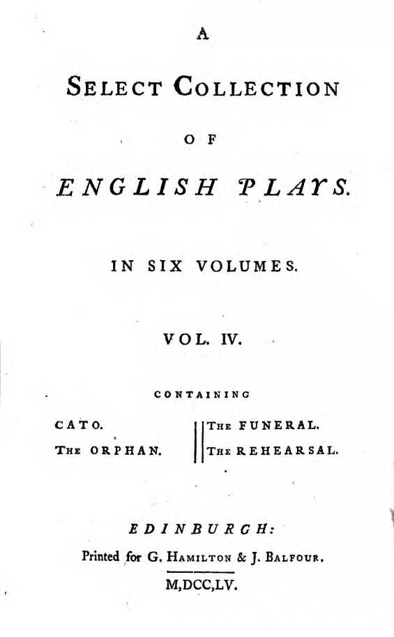In Six Volumes. Containing Tancred & Sigismunda ; Elfrida ; Way of the World ; The Beggar's Opera.