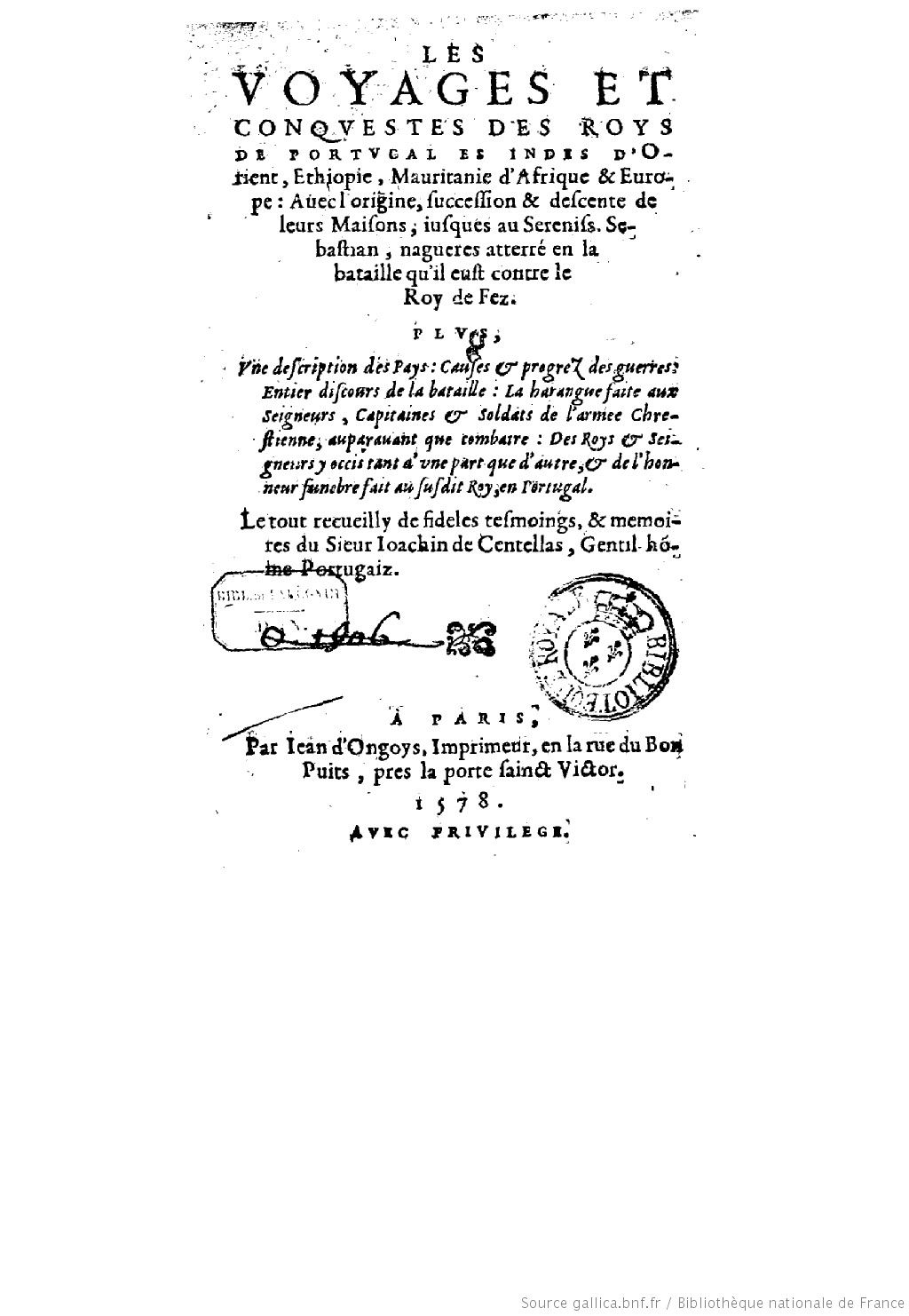 Les Voyages et conquestes des roys de Portugal es Indes d’Orient, Ethiopie, Mauritanie d’Afrique et Europe.