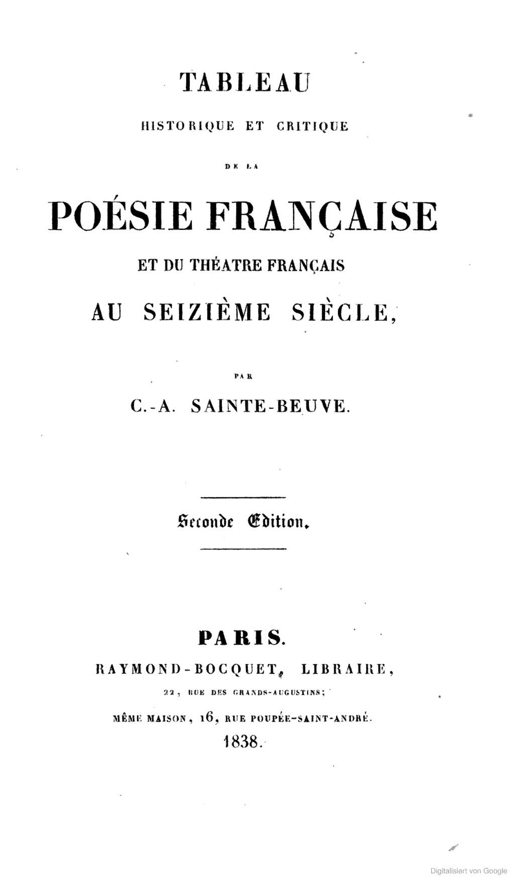 Tableau historique et critique de la Poésie française et du Théâtre français au seizième siècle.