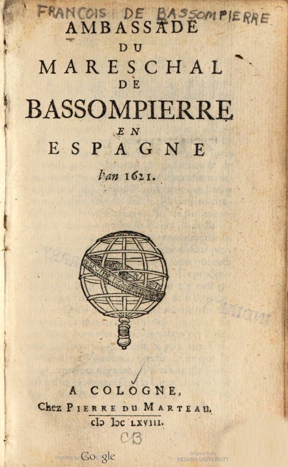 Ambassade du Marechal de Bassompierre en Espagne en 1621.