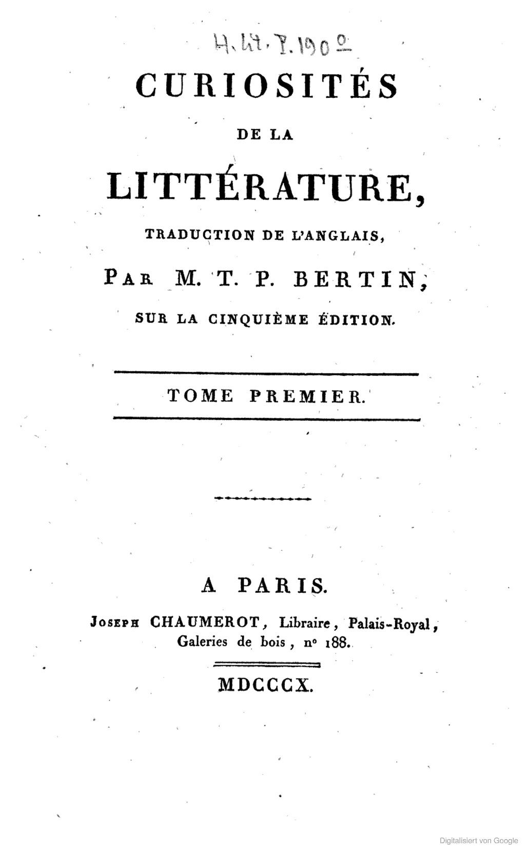 Curiosités de la littérature.