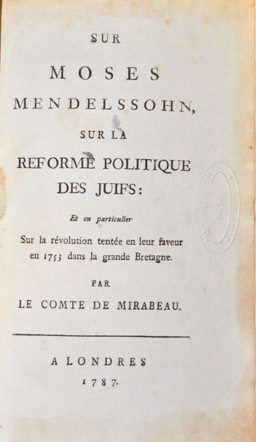 Sur Moses Mendelsohn, sur reforme polit. des juifs et sur la révolution tentée en leur faveur en 1753 dans la Gr. Bretagne.
