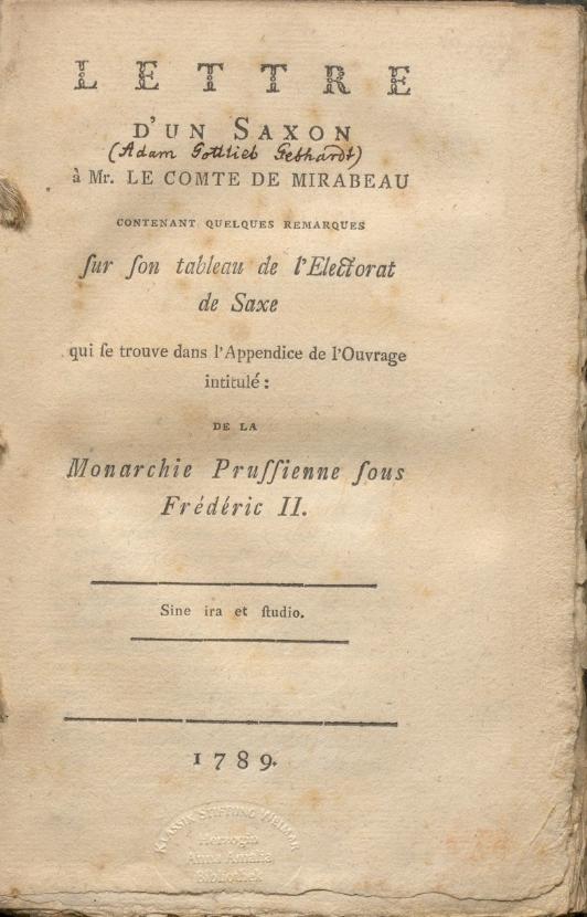 Lettre d'un Saxon à Mr. le Comte de Mirabeau.