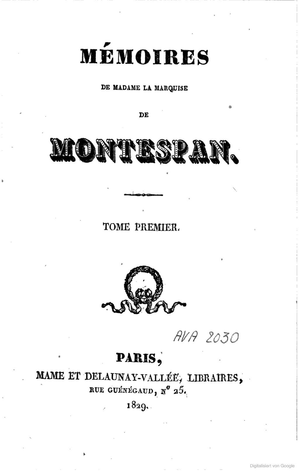 Ecrites par Elle-même, Et addressez à Mademoiselle de *** Pensionnaire au Couvent du Cherche-midi.