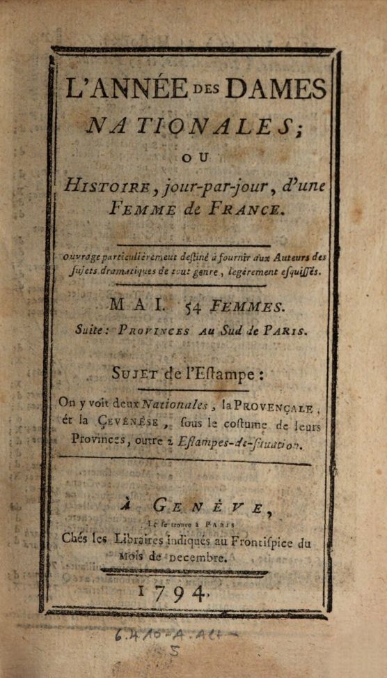 L'Annee des dames nationales; ou histoire jour-par-jour, d’une femme de France.
