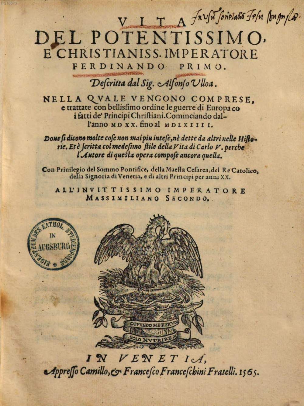 Vita Del Potentissimo, E Christianiss. Imperatore Ferdinando Primo.