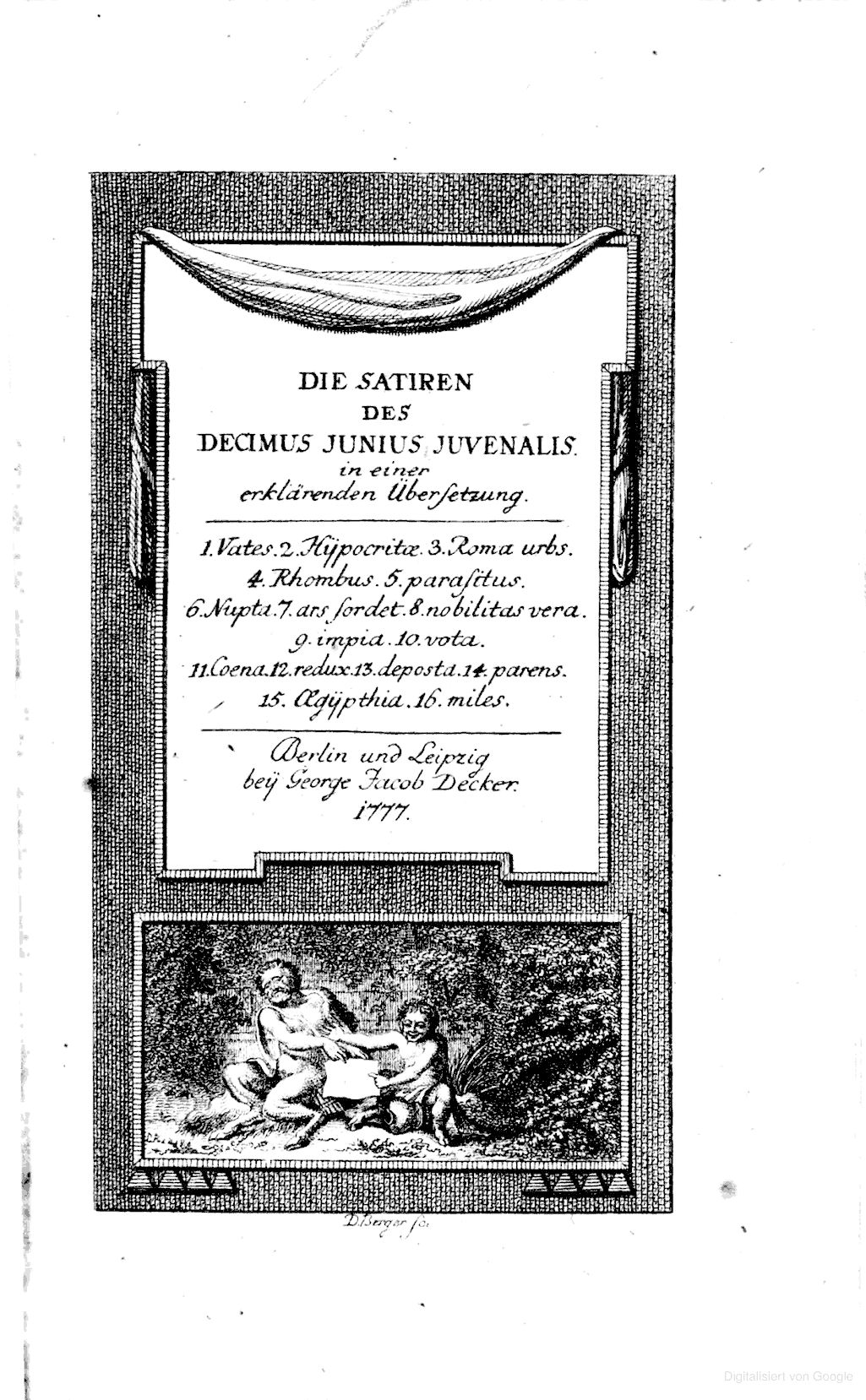 • Iuvenalis, Decimus Iunius Satiren in einer erklärenden Uebersetzung.