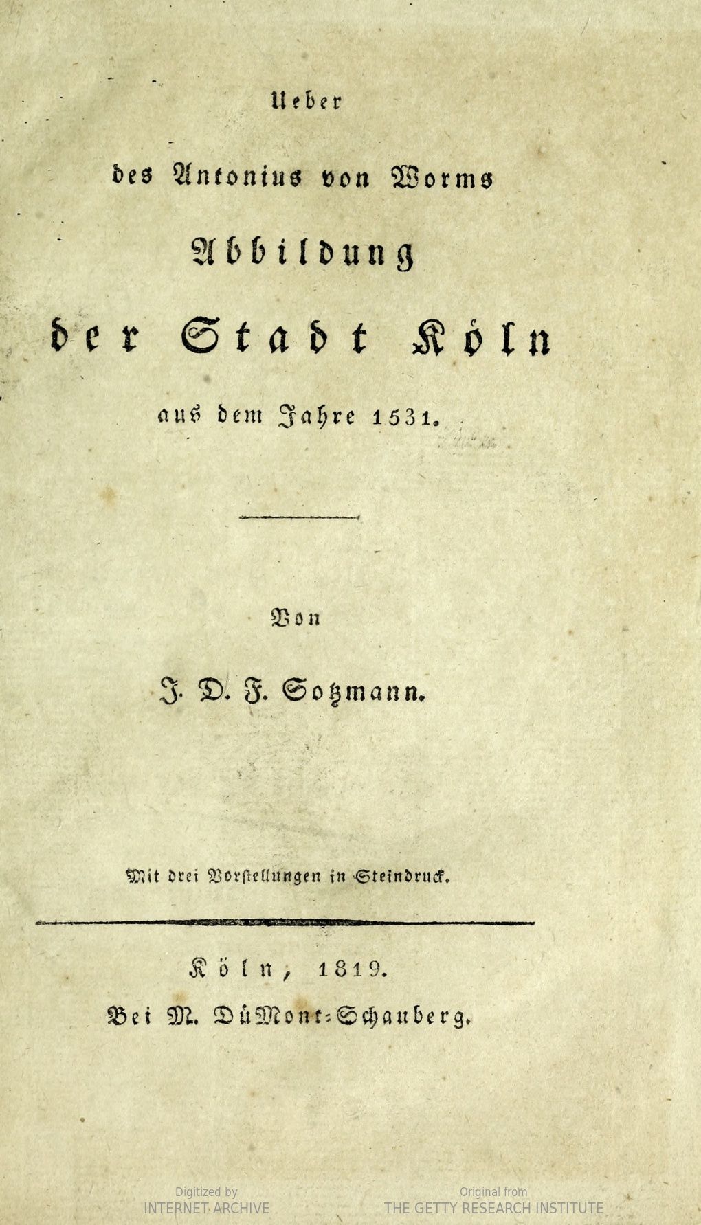 Ueber des Antonius von Worms Abbildung der Stadt Köln aus dem Jahre 1531.