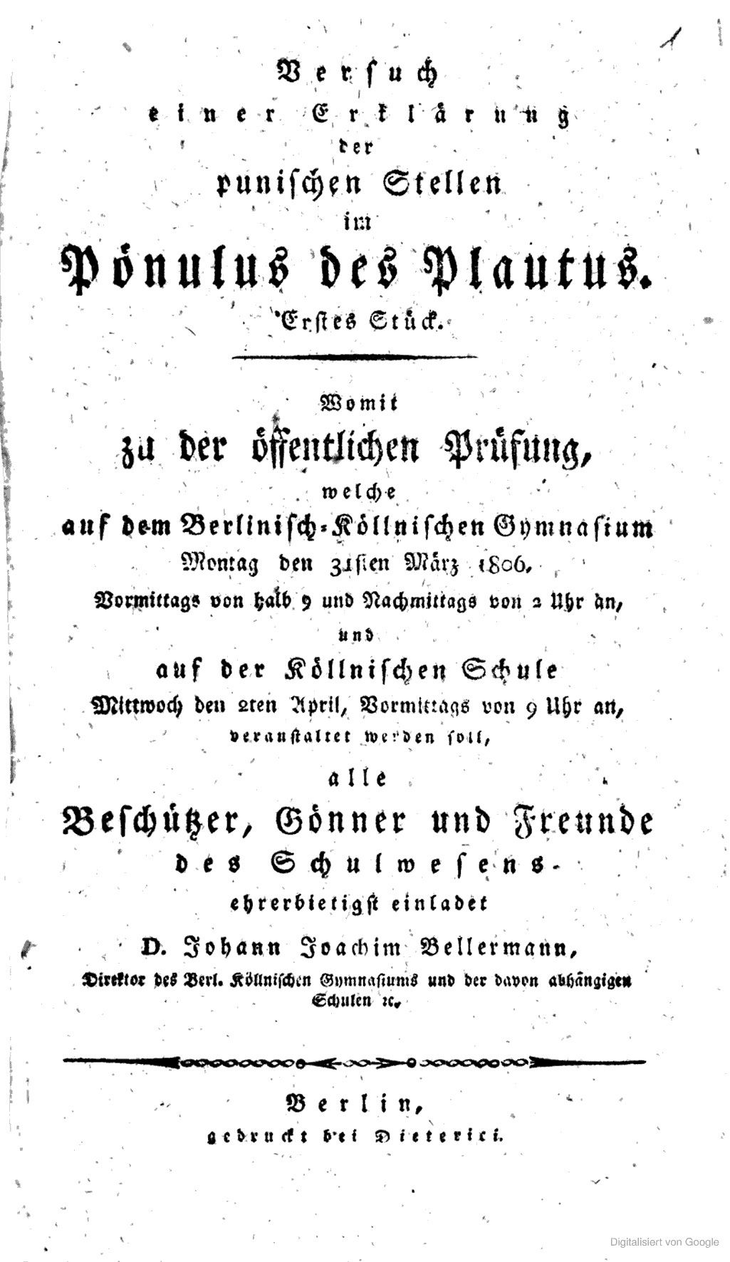 Erklärung der punischen Stellen im Pönulus des Plautus.