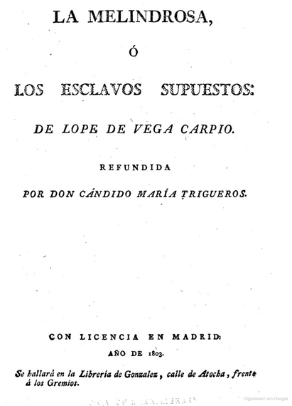 Comedia. Representada varias veces en el Teatro de la Cruz, y reimpresa conforme á la edicion original del mismo autor, que se halla en su obra intitulada: Los Cigarrales de Toledo.