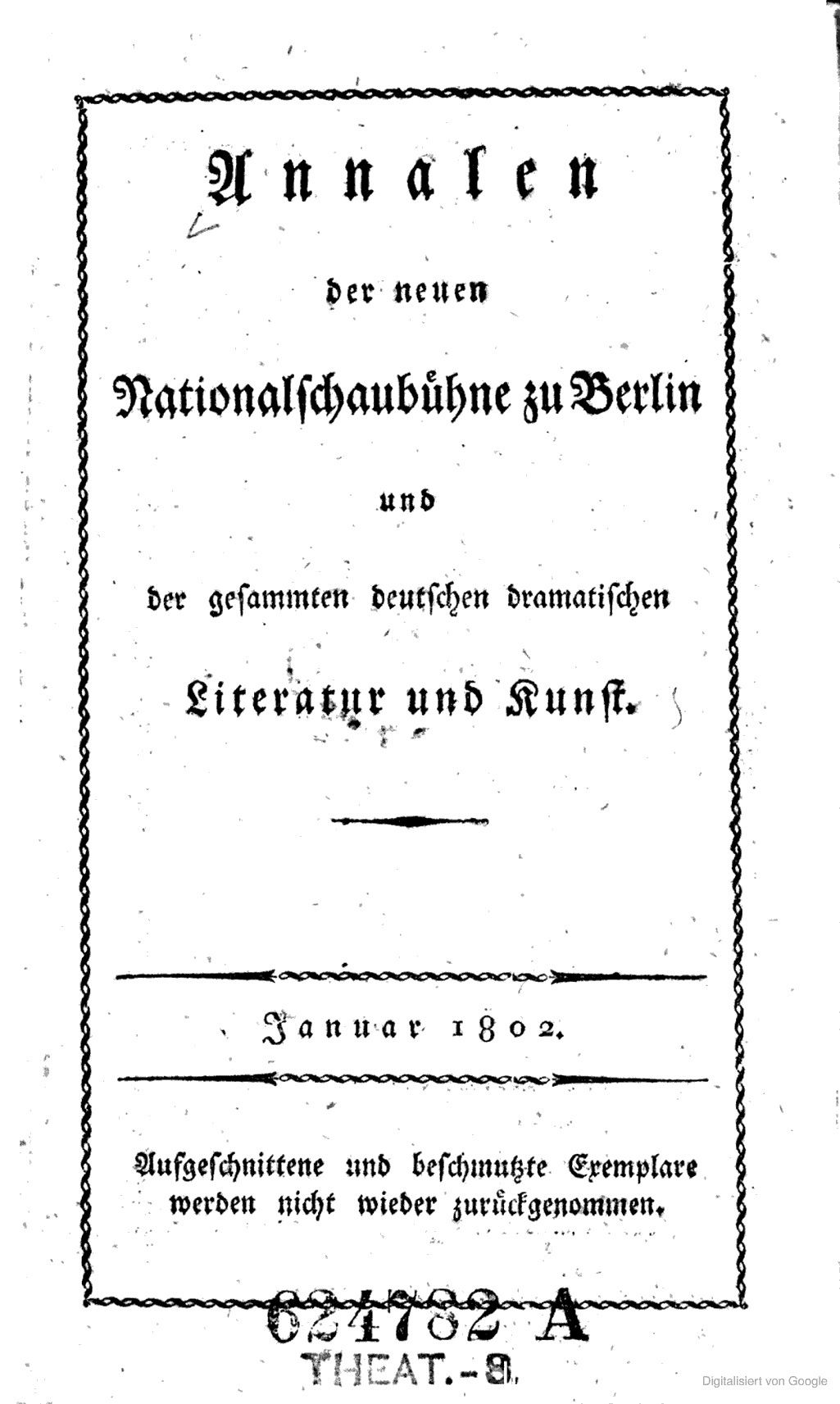 Annalen der neuen Nationalschaubühne zu Berlin, und der gesammten deutschen dramatischen Literatur und Kunst.