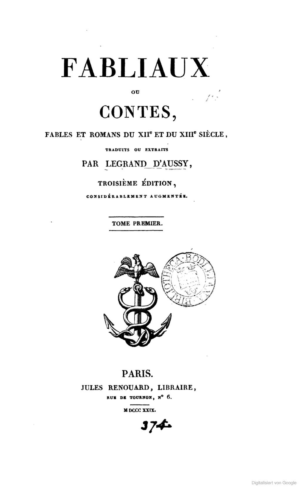 Fabliaux ou contes, fables et romans du XIIe et du XIIIe siecle, traduits ou extraits.
