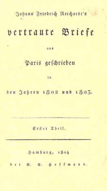 Vertraute Briefe aus Paris geschrieben in den Jahren 1802 und 1803.1804 BT: 1107 Standort: London - British Library Signatur: 10170.a.12.