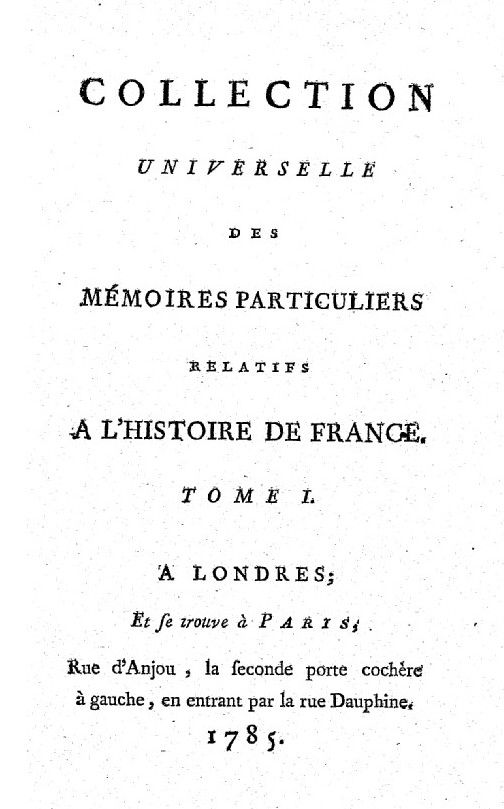 Collection universelle des mémoires particuliers, relatifs à l’histoire de France.