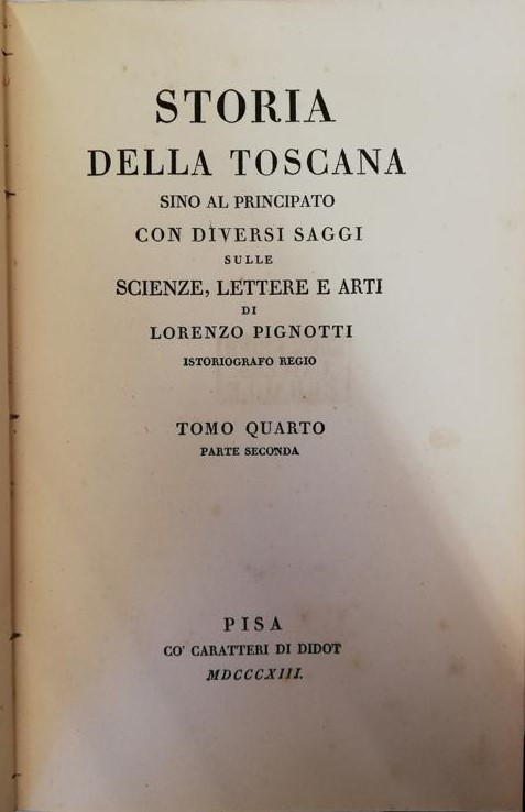 Storia della Toscana sino al principato con diversi saggi sulle scienze, lettere e arti.1813 BT: 6066 Standort: Halle - Universitäts- und Landesbibliothek Halle Signatur: Nq 1674 (4,2)
