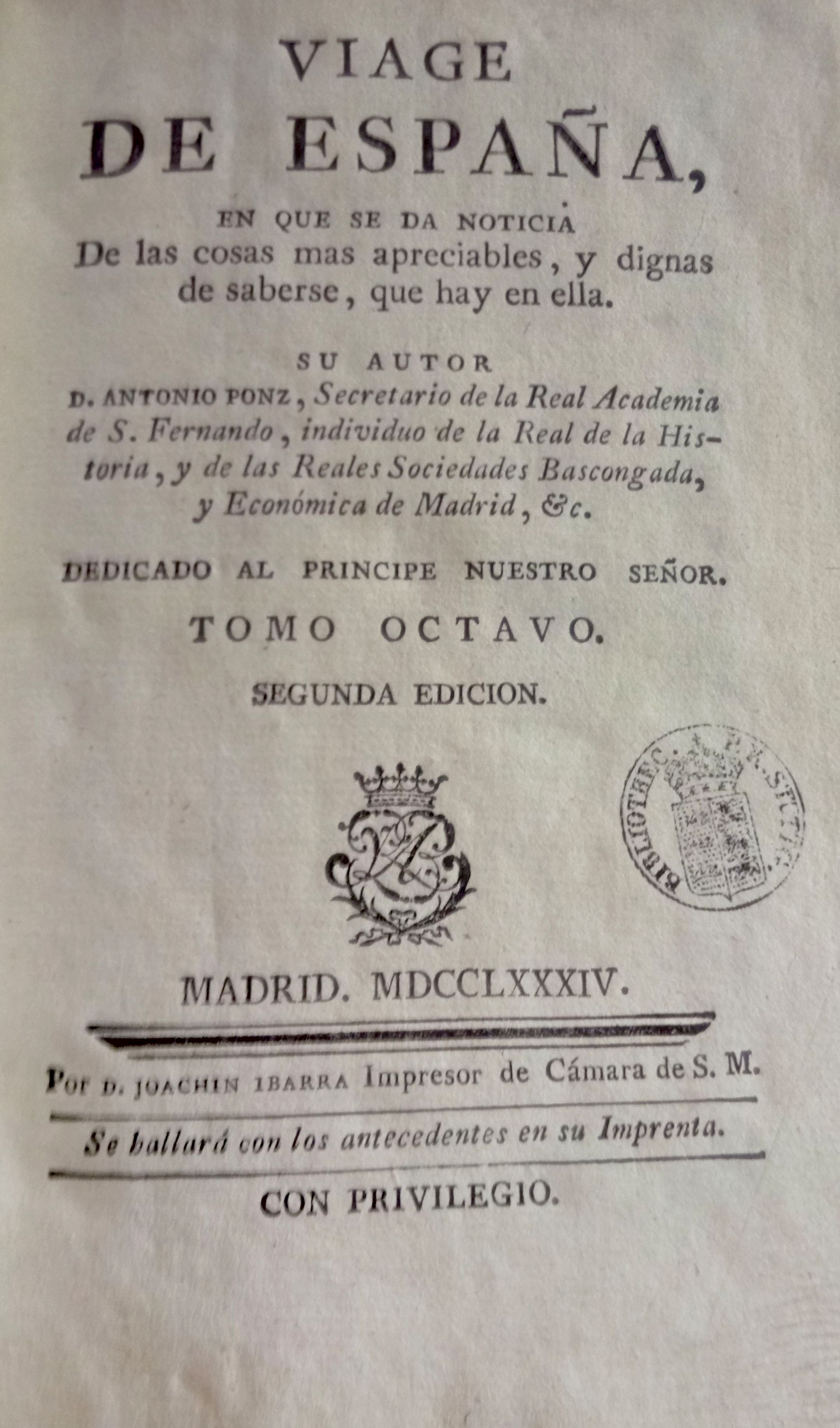 Viage de España, en Que Se Da Noticia De las cosas mas apreciables, y dignas de saberse, que hay en ella.1789 BT: 6105 Standort: Stuttgart - Württembergische Landesbibliothek Signatur: Geogr.oct.5495-4