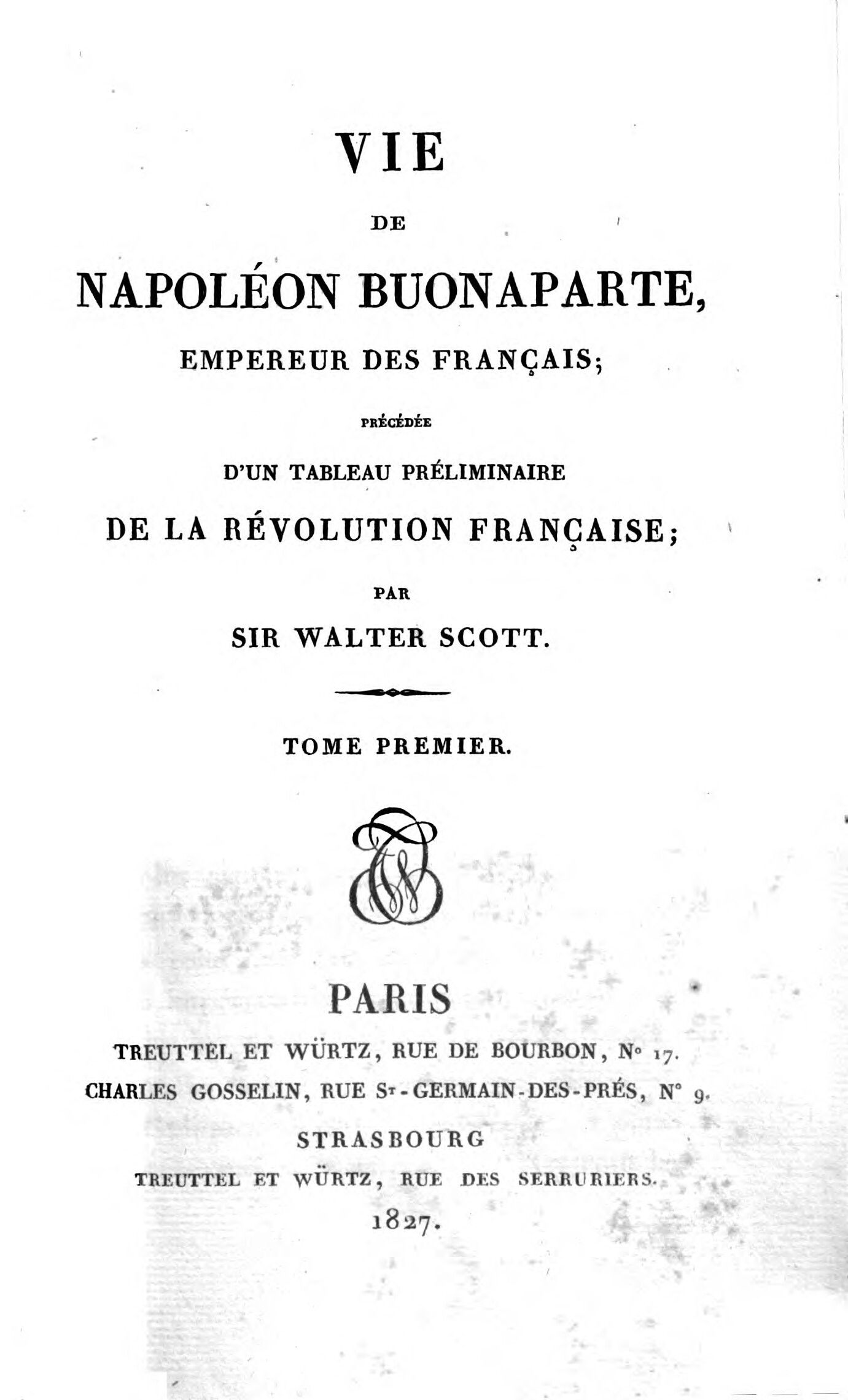 Vie de Napoleon Bonaparte, Empereur des français. Précédée d'un tableau préliminaire de la révolution française.1827 BT: 6367