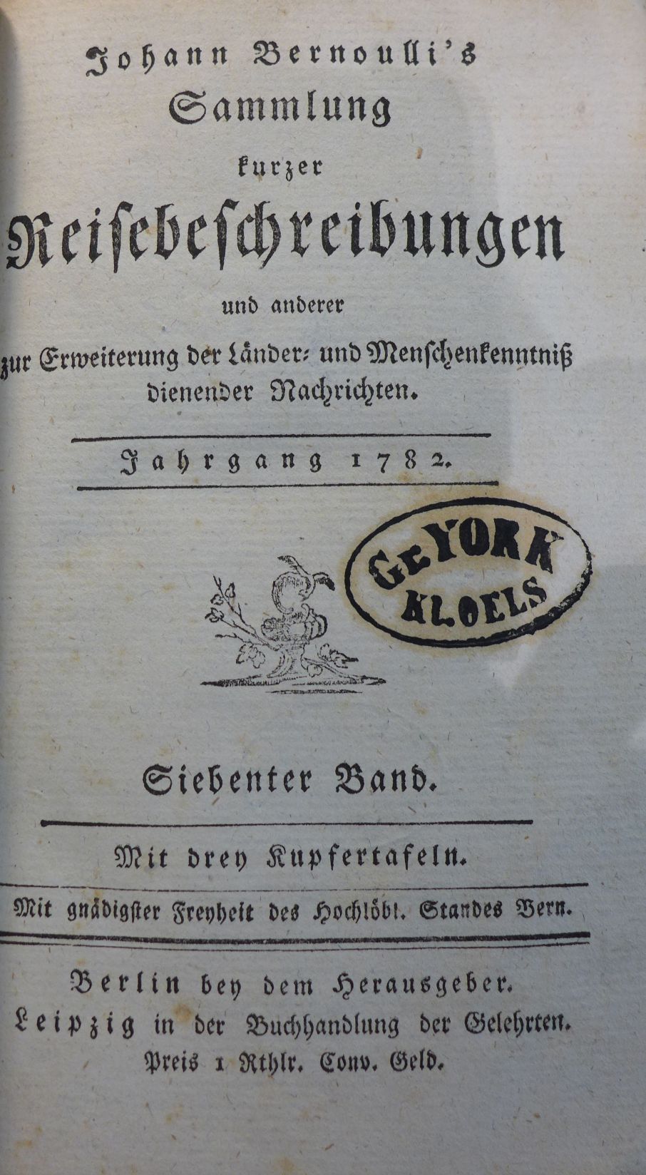 Sammlung kurzer Reisebeschreibungen und anderer zur Erweiterung der Länder- und Menschenkenntniß dienender Nachrichten.1783 BT: 4809 Standort: Breslau - Universitätsbibliothek Wrocław Signatur: 036087