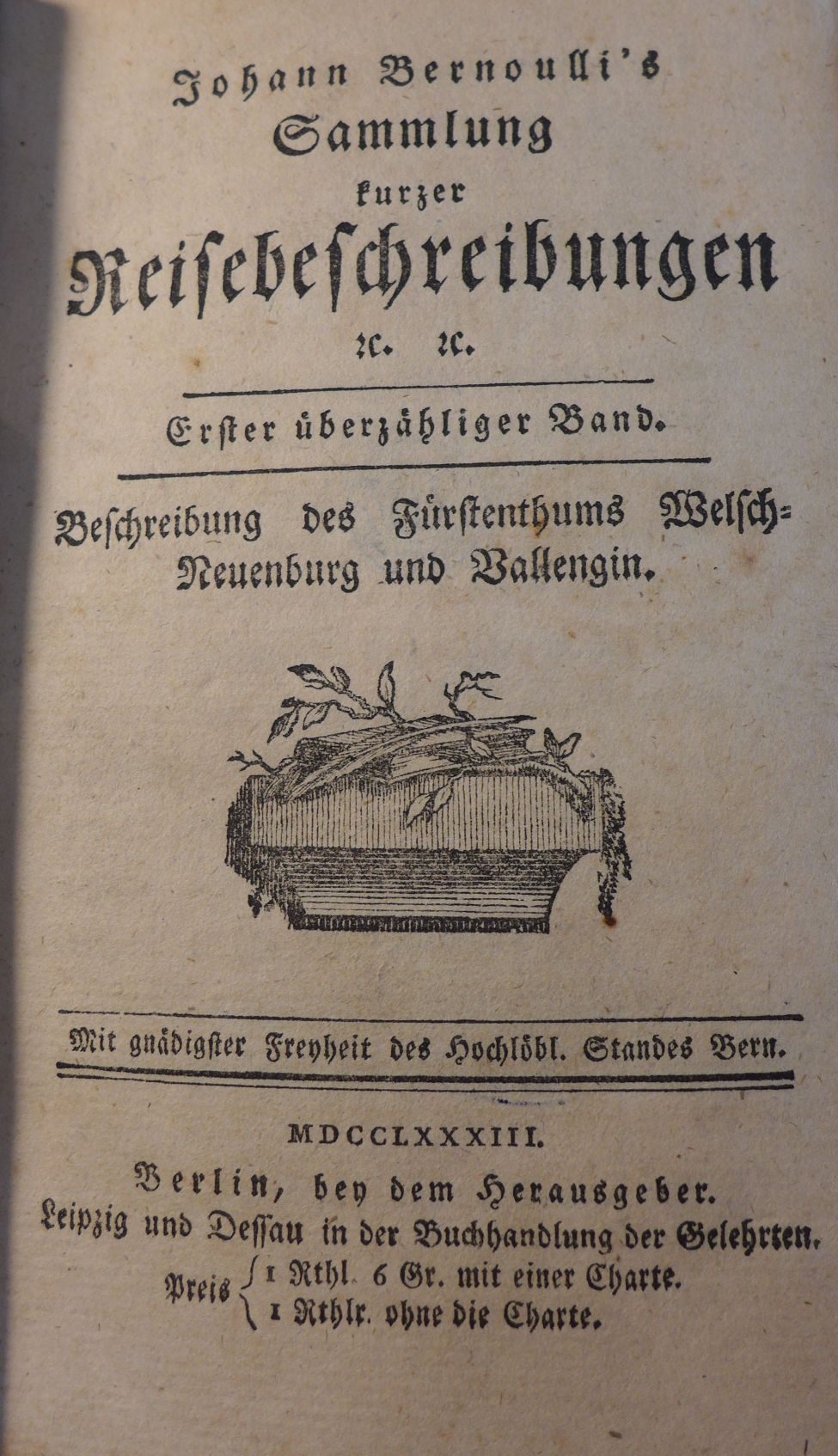 Sammlung kurzer Reisebeschreibungen. Beschreibung des Fürstentums Welsch-Neuenburg und Vallengin.1782 BT: 4809 Standort: Breslau - Universitätsbibliothek Wrocław Signatur: 036087