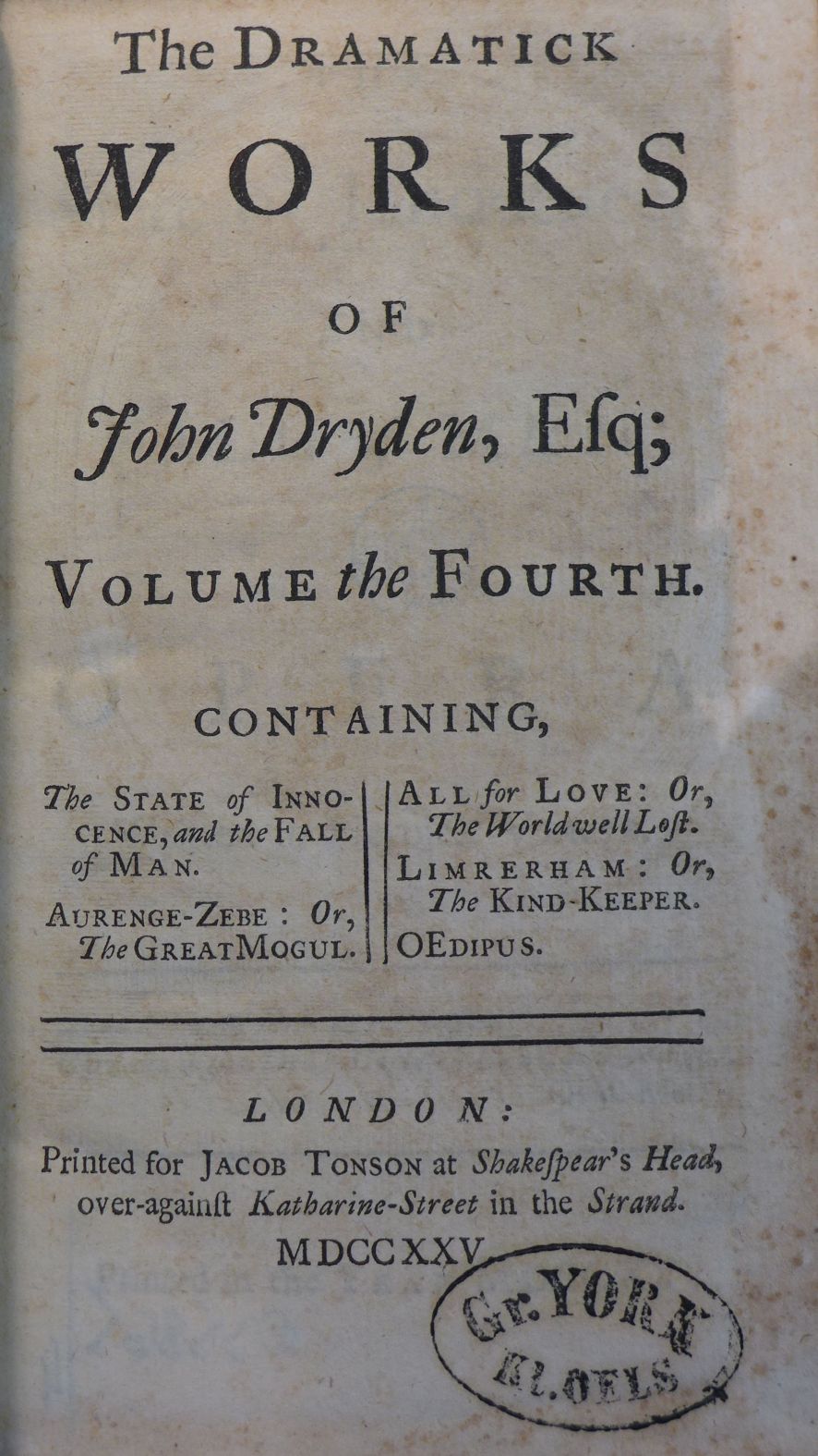 The dramatick works.1725 BT: 1793 Standort: Breslau - Universitätsbibliothek Wrocław Signatur: 035865
