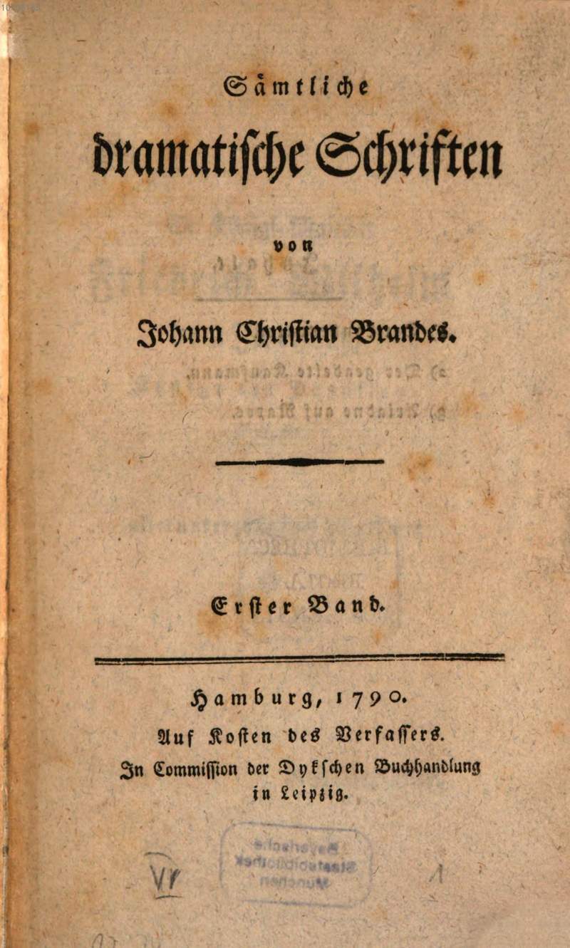 Sämtliche dramatische Schriften.1791 BT: 140 Standort: London - British Library Signatur: 11746.a.14.