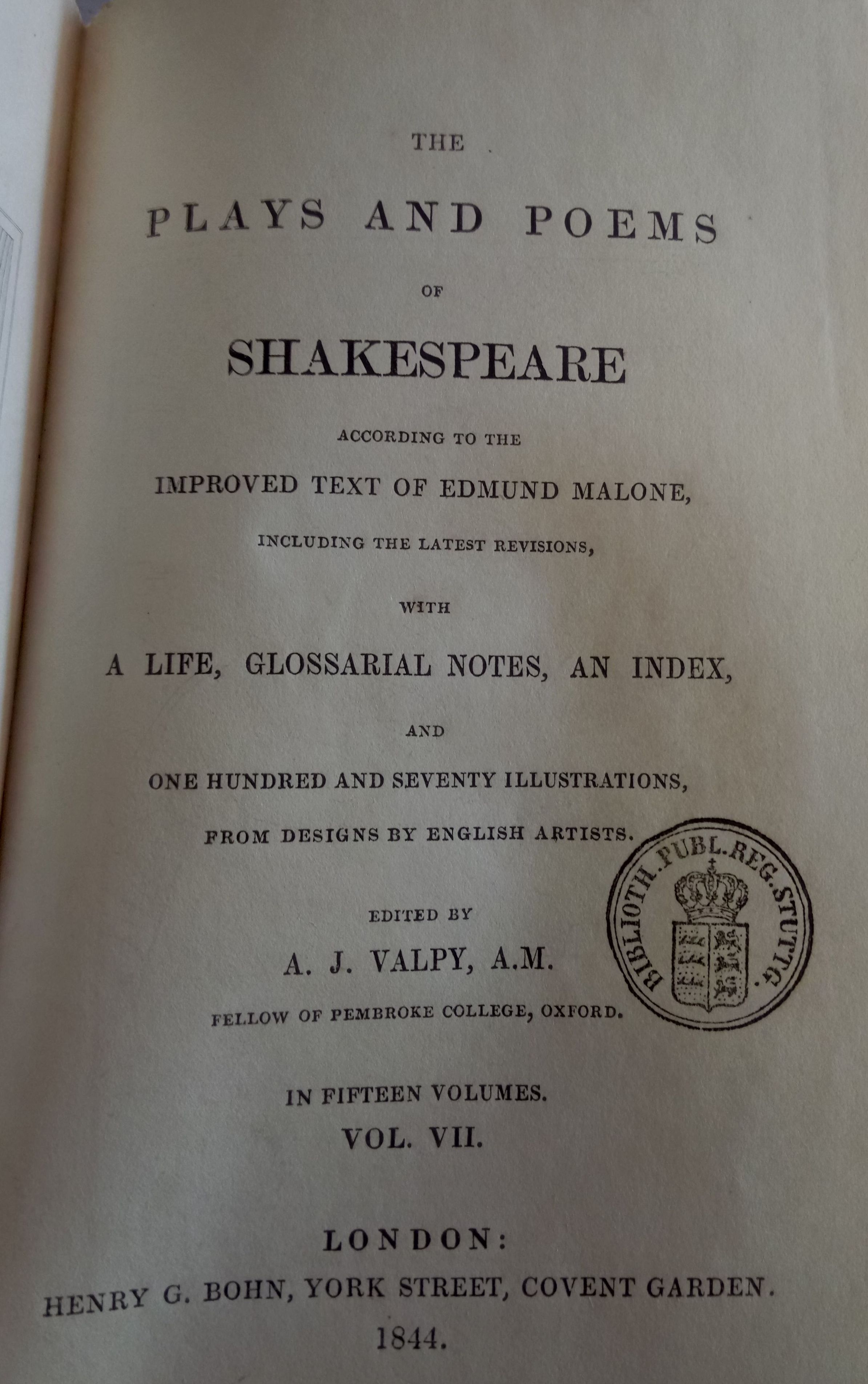 The plays and poems. Life of Shakspeare. Dr. Johnson’s preface. The tempest. Two gentlemen of Verona.1844 BT: 2174 Standort: Stuttgart - Württembergische Landesbibliothek Signatur: Fr.D.oct.1250-1